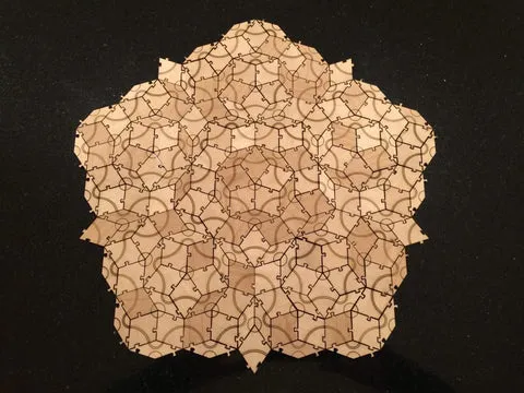 P3 Penrose tiles could just be two simple rhombuses (thick and thin), but you would have to follow special rules to determine whether two tile edges can be matched. But those rules can just be implemented by altering the edges to limit how you can connect the tiles. Remarkably, the resulting tiling is guaranteed to be aperiodic, which means it is not a typical repeating wallpaper-style pattern.