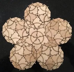 Amazingly, Penrose’s tilings ended up being useful in explaining physical phenomena that was discovered after Penrose discovered the tiles. You can read more about applications to crystallography, as well as the notion of inflation in the article Penrose Tiles talk across the Miles.